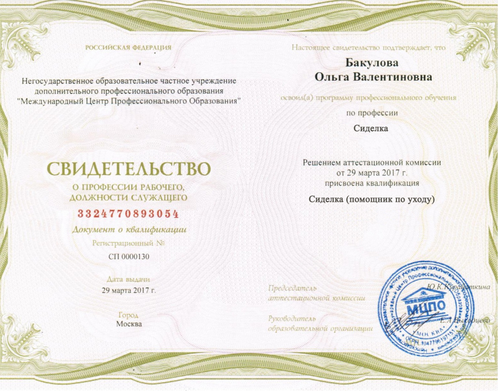 Если у вас нет медицинского образования, но вы хотите стать членом команды МЦСО «Ассоциация патронажных работников» в Майкопе или любом другом городе в качестве сиделки или бизнес-партнёра, вам необходимо пройти специальную профессиональную подготовку, которую проводит наш аккредитованный партнер по эффективной технологии дистанционного профессионального обучения с последующим вручением свидетельства государственного образца, а так же медицинской книжки и всех необходимых справок.